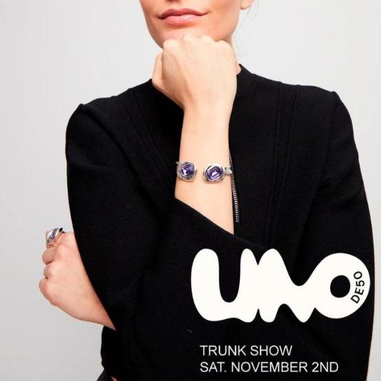 Our highly anticipated Uno de 50 Trunk Show takes place Saturday, November 2nd! Gift with purchase when spending $200+ on Uno de 50 during our once-a-year event, while supplies last. Treat yourself or someone you love to one of their unique artisanal pieces. Made in Madrid.